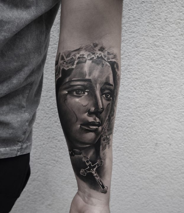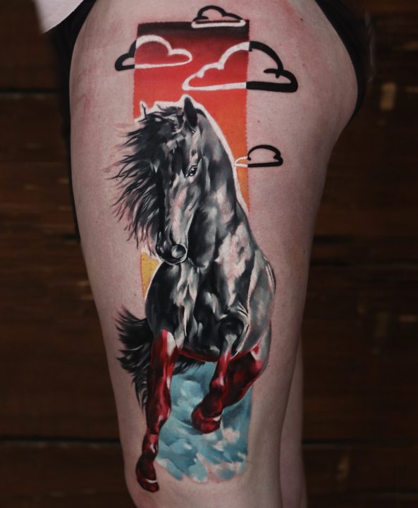 Wśród jego ulubionych motywów znajdują się klimaty mroczne, religijne oraz zwierzęce, ale jako wszechstronny artysta, nie boi się żadnego wyzwania. Każdy projekt traktuje indywidualnie, tworząc wzory idealnie dopasowane do klienta – zarówno pod względem stylu, jak i kompozycji.